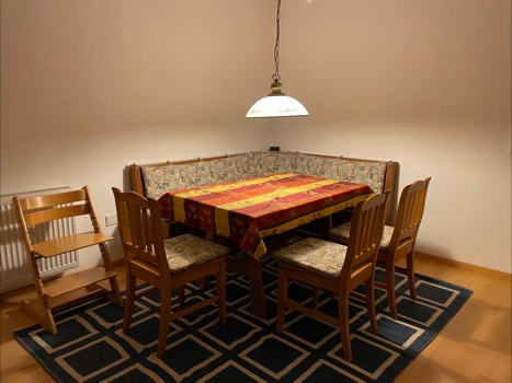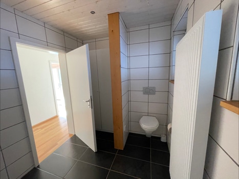 Die circa 85 m² große Wohnung ist ausgestattet mit einem großen, modernisierten Bad/WC mit Dusche, einem großzügigen Esszimmer mit großem Balkon und schöner Aussicht Richtung Süden auf die Berge des Albtraufs. Selbstverständlich ist die Wohnung mit einer Zentralheizung ausgestattet. Zusätzlich ist eine Holzbefeuerung des Kachelofens möglich.