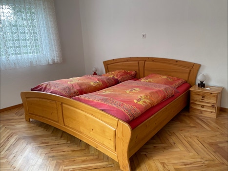 Schlafmöglichkeiten finden sich im Schlafzimmer mit Doppelbett, Kinderzimmer mit Einzelbett und Möglichkeit zur Stellung eines Kinderbettes, sowie einem Klappsofa für maximal zwei Personen im Wohnzimmer. Somit ist die Wohnung gut für 3-5 Personen geeignet, aber auch die Miete für zwei Personen ist möglich.